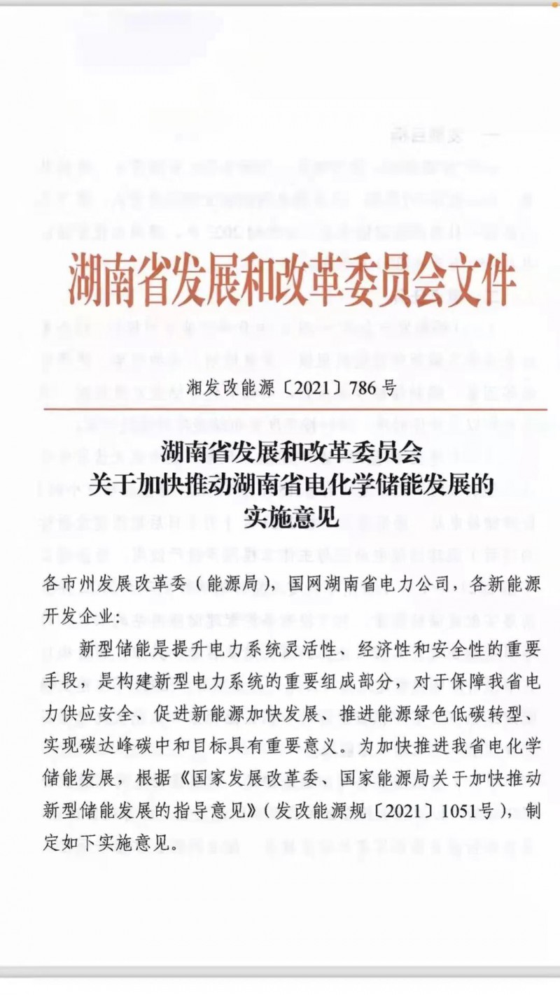 10月13日,湖南省發(fā)改委下發(fā)《關(guān)于加快推動湖南省電化學(xué)儲能發(fā)展的實施意見》,文件明確以發(fā)展電網(wǎng)側(cè)獨立儲能為重點,集中規(guī)劃建設(shè)一批電網(wǎng)側(cè)儲能電站,力爭到2023年建成電化學(xué)儲能電站150萬千瓦/300萬千瓦時以上。