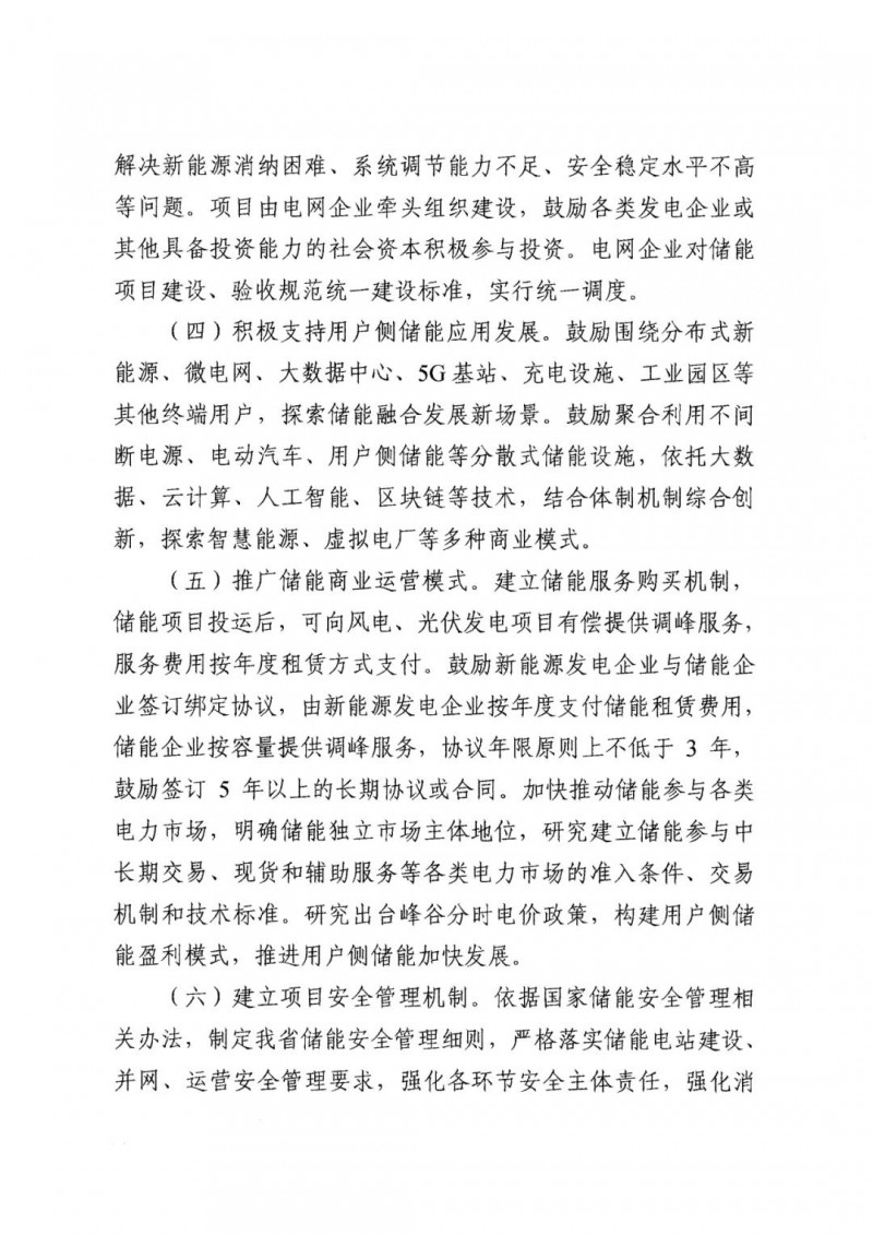 編制發(fā)布全省“十四五”電化學(xué)儲能專項規(guī)劃。綜合考慮全省各區(qū)域新能源裝機規(guī)模、發(fā)展規(guī)劃、消納形勢、資源環(huán)境等因素,編制儲能專項規(guī)劃,明確電化學(xué)儲能發(fā)展規(guī)模、項目布局以及建設(shè)時序,同時按年度發(fā)布儲能項目建設(shè)方案。