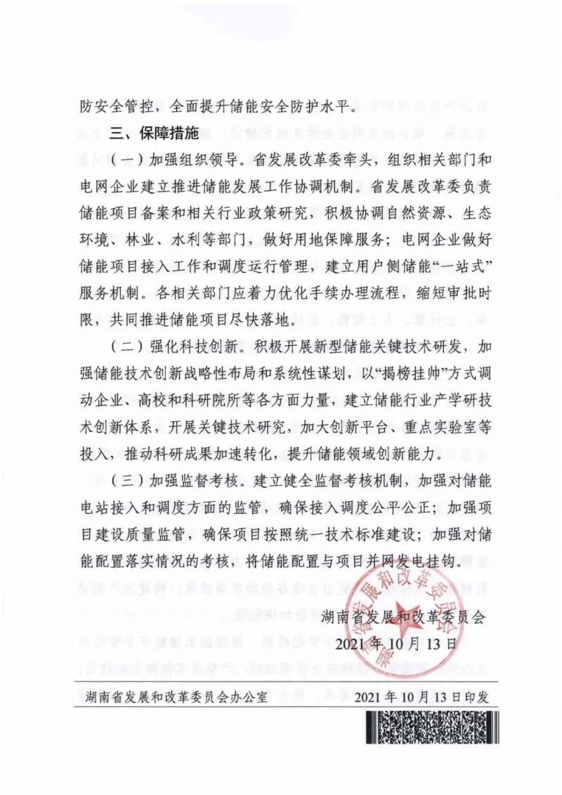 10月13日,湖南省發(fā)改委下發(fā)《關(guān)于加快推動(dòng)湖南省電化學(xué)儲(chǔ)能發(fā)展的實(shí)施意見》,文件明確以發(fā)展電網(wǎng)側(cè)獨(dú)立儲(chǔ)能為重點(diǎn),集中規(guī)劃建設(shè)一批電網(wǎng)側(cè)儲(chǔ)能電站,力爭到2023年建成電化學(xué)儲(chǔ)能電站150萬千瓦/300萬千瓦時(shí)以上。