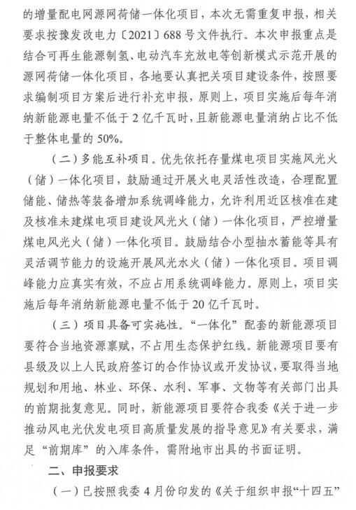 11月30日,河南省發(fā)改委發(fā)布了《關(guān)于補(bǔ)充申報(bào)“十四五”電力源網(wǎng)荷儲一體化和多能互補(bǔ)項(xiàng)目方案》的通知。在今年上半年河南發(fā)改委組織申報(bào)項(xiàng)目的基礎(chǔ)上,再次補(bǔ)充申報(bào)“一體化”項(xiàng)目。