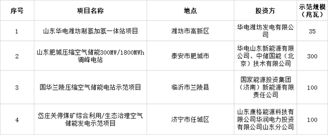 本此公布的示范項(xiàng)目總規(guī)模約達(dá)3.103GW,項(xiàng)目業(yè)主單位包括華能、大唐、華潤、三峽、華電、國家能源集團(tuán)、國家電投、中核、中廣核、山東電工電氣、國網(wǎng)山東、特變電工等多家企業(yè)。除常規(guī)的鋰電池類項(xiàng)目外,此次還有壓縮空氣儲(chǔ)能、制氫加氫一體站、空氣儲(chǔ)能等新技術(shù)示范項(xiàng)目。
