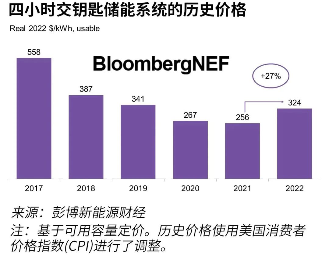 儲能系統(tǒng)成本長期內將繼續(xù)下降,但從短期來看,原材料限制、高勞動力成本和來自交通運輸行業(yè)的競爭性需求將使儲能價格高企。來自新入局者的競爭可能會降低系統(tǒng)集成和開發(fā)商的利潤率,使2023年成本較2022年略有下降。
