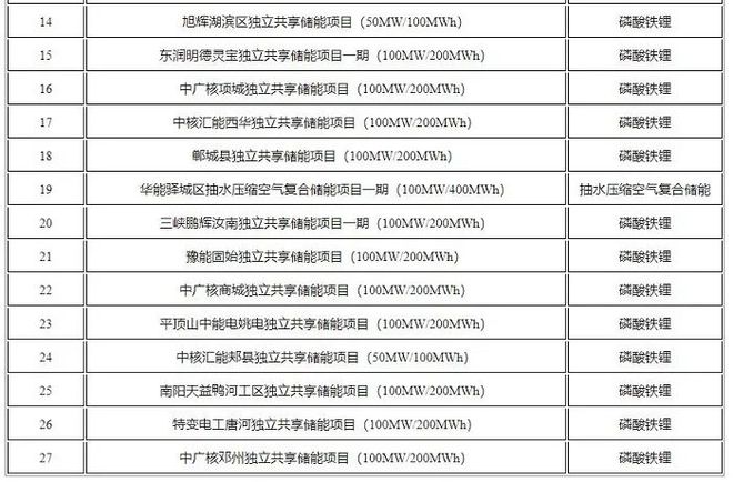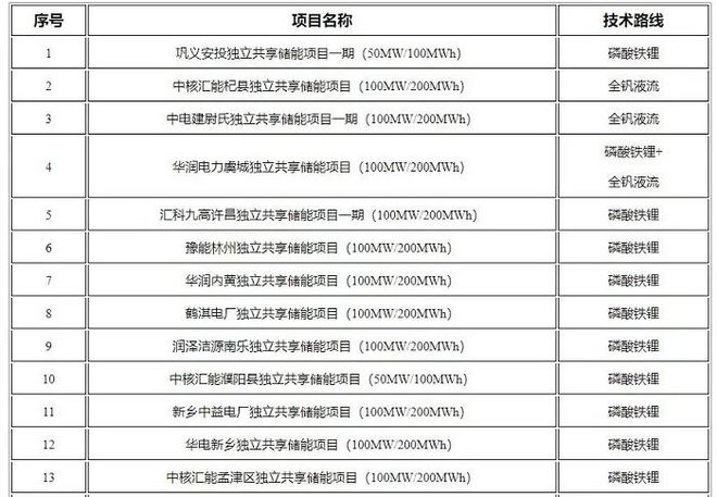 河南省第二批省級獨立儲能電站示范項目名單