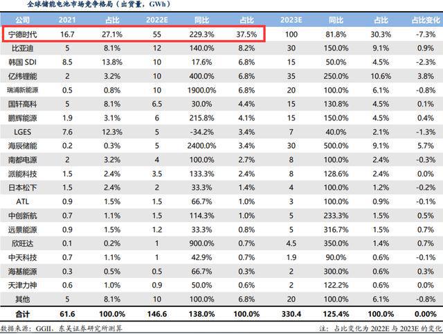在儲(chǔ)能制造業(yè)的最后一環(huán)——產(chǎn)品端,類似光伏行業(yè)的一體化組件企業(yè),其特點(diǎn)是“一超多強(qiáng)”,或者說是一超多不強(qiáng),寧王一家獨(dú)大。
