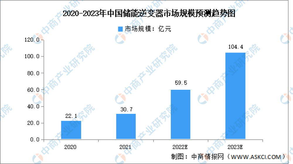 近年來,我國儲(chǔ)能市場顯現(xiàn)出高速增長態(tài)勢(shì),催生對(duì)于儲(chǔ)能逆變器的巨大需求,儲(chǔ)能逆變器市場前景廣闊。數(shù)據(jù)顯示,2020年我國儲(chǔ)能逆變器市場規(guī)模達(dá)22.1億元,2021年進(jìn)一步增長至30.7億元,同比增長,預(yù)計(jì)2023年我國儲(chǔ)能逆變器市場規(guī)模將達(dá)104.4億元。