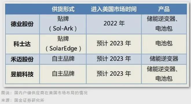 寧德時(shí)代為 Tesla、Fluence 主要供應(yīng)商之一,受益較高;科士達(dá)為 SolarEdge 主要電池代工供應(yīng)商;德業(yè)股份綁定美國經(jīng)銷商 Sol-Ark;禾邁股份、昱能科技(微逆)、科陸電子(電池、PCS)等均在美國有出貨。