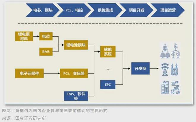 中國企業(yè)主要作為供應(yīng)商參與其中,主要分為兩種,分別是直接出口集成好的系統(tǒng)或電池柜或?yàn)楹M庀到y(tǒng)集成商供應(yīng)電芯、PCS 或溫控等設(shè)備。