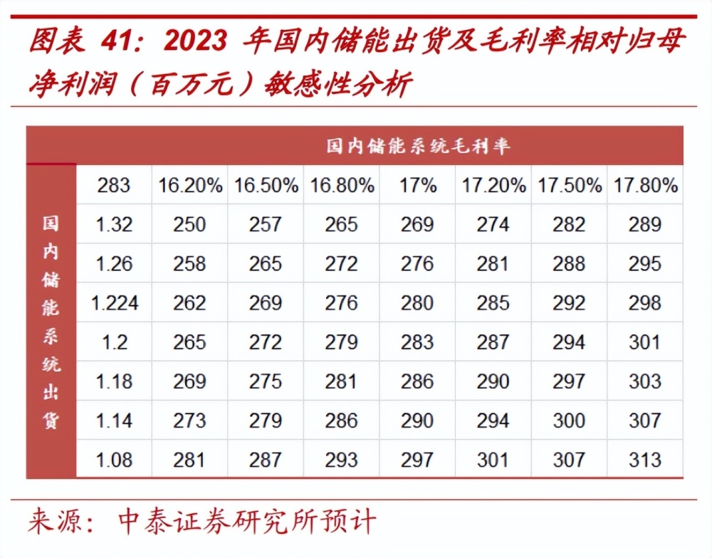 同時,新產(chǎn)能逐步落地,2022 年 7 月, 公司宜春儲能生產(chǎn)基地一期年產(chǎn)能 3GWh 正式投產(chǎn),預計二期 5GW 產(chǎn) 能于 23 年底開始投產(chǎn),待項目滿產(chǎn)后總產(chǎn)能達 8GW。我們預計 22、23、 24 年國內(nèi)儲能系統(tǒng)出貨量分別為 0.06、1.20、2.40GWh,海外儲能系 統(tǒng)出貨量分別為 0.14、1.80、3.50GWh。因儲能系統(tǒng)價格調(diào)整滯后于電 池價格調(diào)整,在電池降價過程中儲能系統(tǒng)盈利提升,預計國內(nèi)的儲能業(yè) 務毛利率分別為 15%、17%、19%;海外較國內(nèi)毛利率略高。