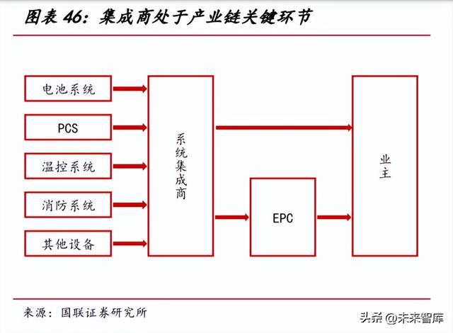 儲能系統(tǒng)的構成相對復雜,集成商扮演安全第一責任人的身份。儲能電站系統(tǒng)是 由儲能電池、儲能變流器(PCS)、溫控系統(tǒng)、消防系統(tǒng)、升壓系統(tǒng)、電池管理系統(tǒng) (BMS)、能量管理系統(tǒng)(EMS)和其他諸多設備集成的復雜系統(tǒng)。儲能系統(tǒng)集成商 向上游對接大量設備供應商,將各子系統(tǒng)高效、安全地集成為儲能系統(tǒng)產品,向下游 業(yè)主或 EPC 承包商交付并提供后續(xù)的質保服務,是儲能項目安全的第一責任人。