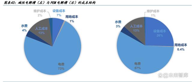 (2)從發(fā)展階段來看,示范階段更注重初裝成本,商業(yè)化運營需考慮全生命周期成 本。當前電解水項目大多處于示范階段,堿性電解槽技術(shù)更成熟、設備價格也相對更 低,示范階段更傾向于堿性電解槽的應用。未來進入商業(yè)化運營時,全生命周期成本 成為首要考慮因素,即需加入運營成本進行考量,堿性電解槽運營成本占其全生命周 期成本的 75%-80%,PEM 則是占 30-40%,在 PEM 電解槽設備逐年降本以及其更適合與 風光耦合的情況下,PEM 電解槽的應用將呈現(xiàn)逐年上升趨勢。