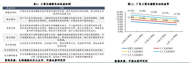以廣東為代表的工商業(yè)較為發(fā)達(dá)的地區(qū)工商業(yè)儲(chǔ)能電站已經(jīng)具備了一定經(jīng)濟(jì)性。在廣東地區(qū),在僅考慮峰谷價(jià)差套利單一受益方式的情況下, 工商業(yè)儲(chǔ)能電站通過每天兩充兩放(一次谷充尖放、一次平充峰放),初始投資成本為1.6元/Wh,最大峰谷價(jià)差在1.1元/度的情況下,其資 本金收益率可達(dá)9.4%,投資回收期在8年之內(nèi)。在鋰電成本持續(xù)下降的情況下,改投資回收期有望進(jìn)一步縮短。