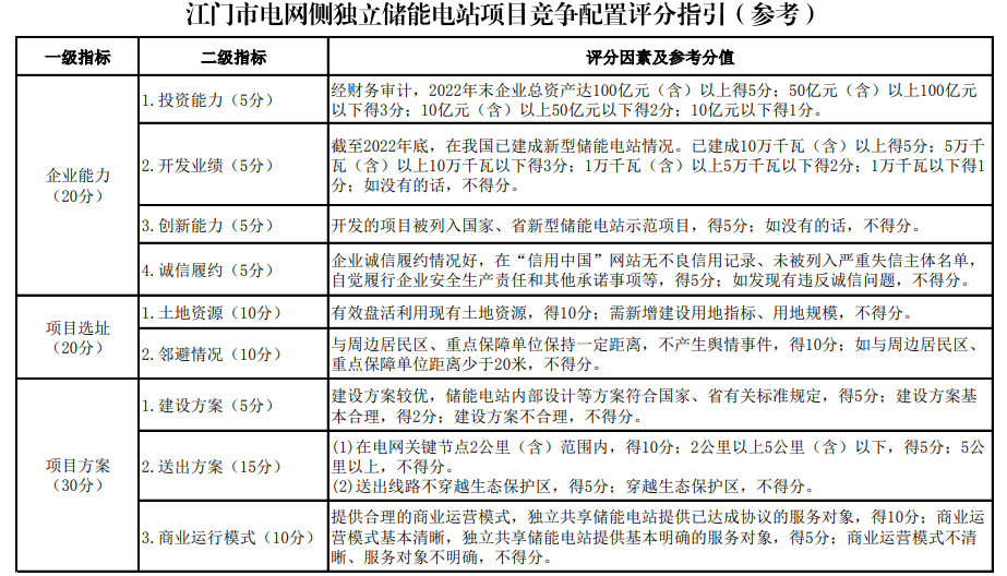 江門發(fā)展改革局印發(fā)《江門市新型儲能電站項目推薦布局實施方案(2023-2027 年)》(簡稱:《方案》)。