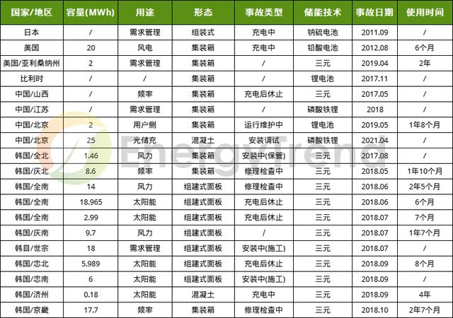 圖:部分儲能電站爆炸事故詳情