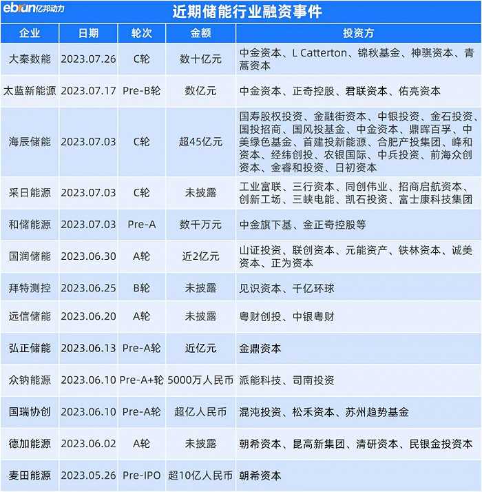 當(dāng)前,儲能市場受到資本空前的熱烈追捧。目前為止2023年儲能賽道披露的融資共53起,僅7月就有5起融資事件,來看最近一個月發(fā)生的儲能融資事件: