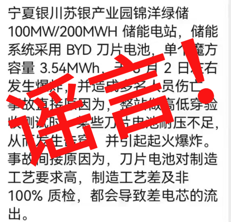 對此,比亞迪儲能回應(yīng)稱,經(jīng)核實(shí),該項(xiàng)目從未發(fā)生過起火、爆炸和人員死亡事故,網(wǎng)傳信息系惡意拼接的謠言。
