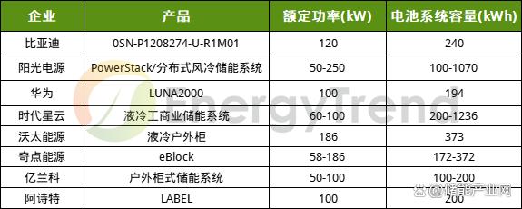 圖:部分工商業(yè)儲(chǔ)能產(chǎn)品梳理