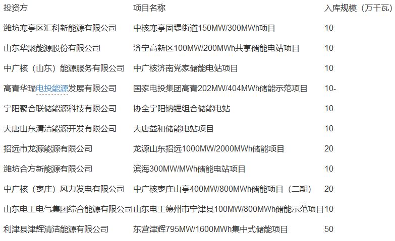 2023年新型儲能入庫項目(第一批)部分公示名單
