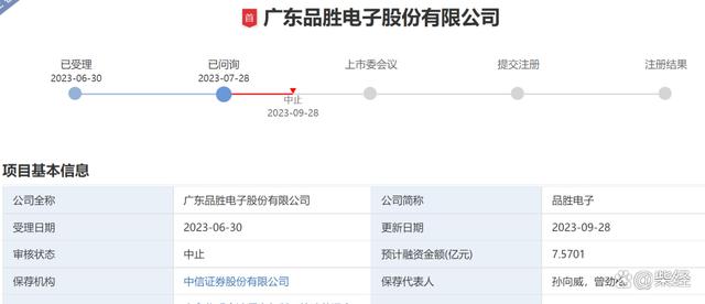 9月28日,深交所官網(wǎng)顯示,廣東品勝電子股份有限公司(以下簡(jiǎn)稱“品勝電子”)因更新財(cái)務(wù)資料中止IPO。儲(chǔ)能早知道注意到,品勝電子于6月30日獲深交所受理,并首次披露招股書申報(bào)稿,于7月28日通過深交所下發(fā)第一次審核問詢函。