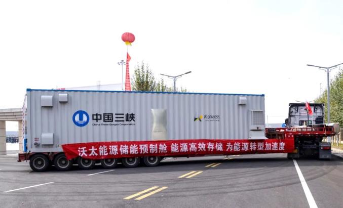 10月17日,在三峽現(xiàn)代能源創(chuàng)新示范園內(nèi),隨著2輛裝載儲(chǔ)能預(yù)制艙的裝備物流車緩緩駛出,標(biāo)志著沃太能源儲(chǔ)能系統(tǒng)首套預(yù)制艙正式下線。副市長(zhǎng)方澤出席下線儀式。