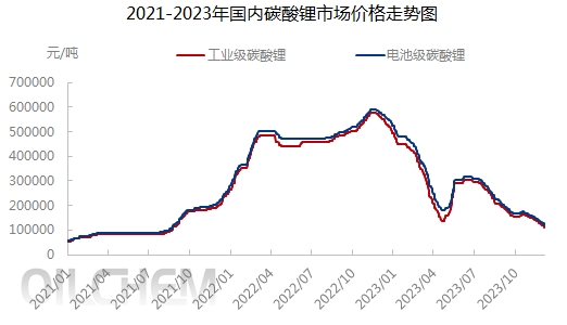 上游環(huán)節(jié),截至12月,鋰電上游碳酸鋰價格已全線跌破10萬元/噸大關。而在去年,由于動力電池及儲能行業(yè)需求爆發(fā),上游原材料一度供不應求,碳酸鋰最高曾攀升至60萬元/噸。