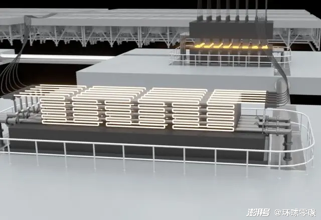圖說:加熱元件為液態(tài)錫加載能量,并將能量儲存在白熱石墨塊中
