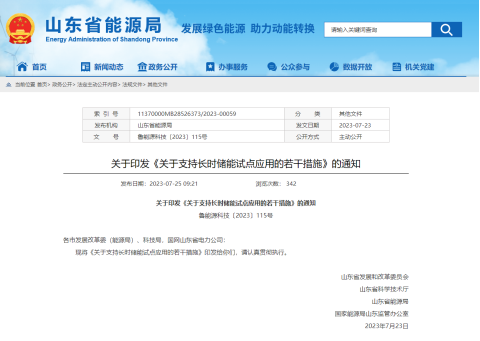 2023年7月,山東省出臺(tái)《關(guān)于支持長(zhǎng)時(shí)儲(chǔ)能試點(diǎn)應(yīng)用的若干措施》,要求試點(diǎn)項(xiàng)目規(guī)模不低于10萬(wàn)千瓦,滿功率放電時(shí)長(zhǎng)不低于4小時(shí),這是國(guó)內(nèi)首個(gè)支持長(zhǎng)時(shí)儲(chǔ)能發(fā)展的地方性專項(xiàng)政策,長(zhǎng)時(shí)儲(chǔ)能可享受優(yōu)先接入電網(wǎng)、優(yōu)先租賃、容量補(bǔ)償標(biāo)準(zhǔn)提高、減免輸配電價(jià)等優(yōu)惠政策。