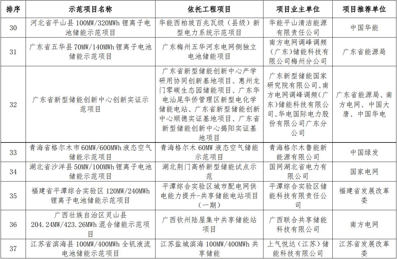 附件:新型儲(chǔ)能試點(diǎn)示范項(xiàng)目公示名單