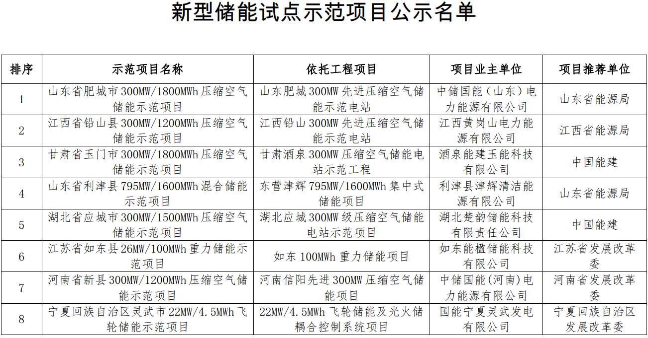 國(guó)家能源局綜合司關(guān)于公示新型儲(chǔ)能試點(diǎn)示范項(xiàng)目的通知