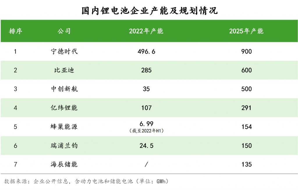 此外,寧德時代、比亞迪、中創(chuàng)新航、億緯鋰能、蜂巢能源等玩家也制定了很高的產(chǎn)能目標(biāo),他們 2025 年的預(yù)計鋰電池產(chǎn)能分別為 900GWh、600GWh、500GWh、291GWh、154GWh。