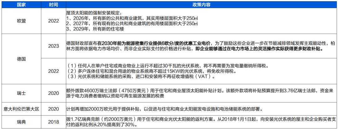 圖:歐洲部分國家和地區(qū)工商業(yè)儲能補(bǔ)貼政策