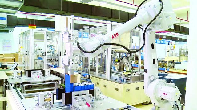 億緯鋰能方形鐵鋰電池模組自動(dòng)化生產(chǎn)車(chē)間。