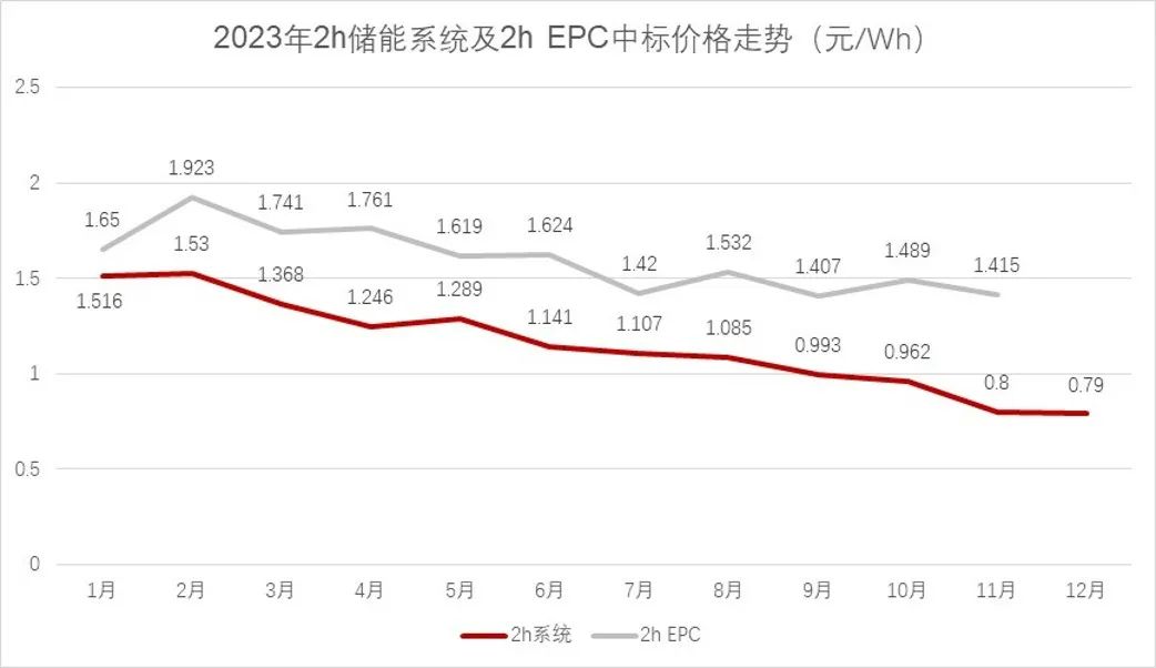 短短一年時間,儲能系統(tǒng)價格已經(jīng)幾近腰斬。來自中關(guān)村儲能產(chǎn)業(yè)技術(shù)聯(lián)盟(CNESA)的統(tǒng)計,到2023年年末,2小時儲能系統(tǒng)中標均價已經(jīng)跌至0.79元/Wh,較年初下降48%。而這還僅僅是平均價,一些企業(yè)的報價還在平均價格之下。