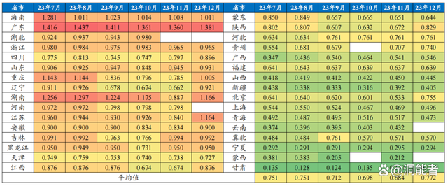 2023年下半年國內各省月度峰谷價差統(tǒng)