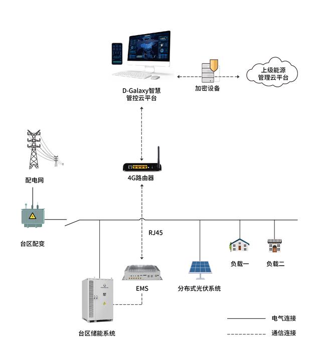 臺(tái)區(qū)的儲(chǔ)能系統(tǒng)不是獨(dú)立運(yùn)行的,建立臺(tái)區(qū)間互聯(lián)互通的智能運(yùn)維體系,結(jié)合臺(tái)區(qū)負(fù)荷特性進(jìn)行智能化的管理和調(diào)度,才能充分發(fā)揮其在電能治理方面的重要作用。弘正數(shù)字化儲(chǔ)能系統(tǒng)可以實(shí)現(xiàn)多個(gè)臺(tái)區(qū)間互聯(lián)互供,緩解負(fù)荷尖峰,均衡負(fù)載,提高剩余容量的利用率;同時(shí),通過接入D-Galaxy智慧儲(chǔ)能管控平臺(tái)加速臺(tái)區(qū)間信息交互及優(yōu)化調(diào)控,實(shí)時(shí)監(jiān)測電網(wǎng)狀態(tài)和需求,快速響應(yīng)電網(wǎng)變化,完成控制系統(tǒng)能量管理策略和運(yùn)行模式判斷與切換,增加電力系統(tǒng)靈活性,助力新型電網(wǎng)安全運(yùn)行。