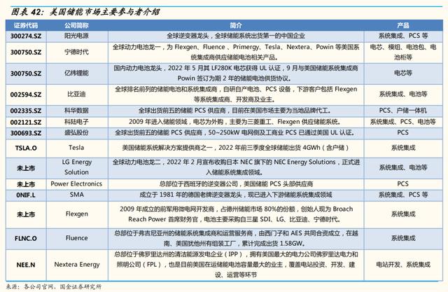 美國儲(chǔ)能市場(chǎng)主要參與者