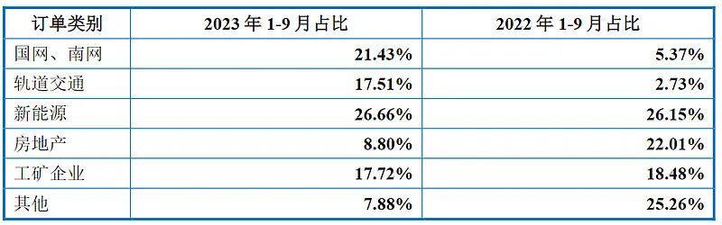 截至2023年9月末,公司在手訂單達(dá)到6.81億元,公司在手訂單充足。下圖可以看出,公司來自新能源和國(guó)網(wǎng)等大型客戶的訂單占比明顯提高。2023年公司市場(chǎng)開拓重心主要是新能源和國(guó)網(wǎng)南網(wǎng)等大型集團(tuán)客戶、大型項(xiàng)目,2023年1—9月新增訂單結(jié)構(gòu)占比情況如下: