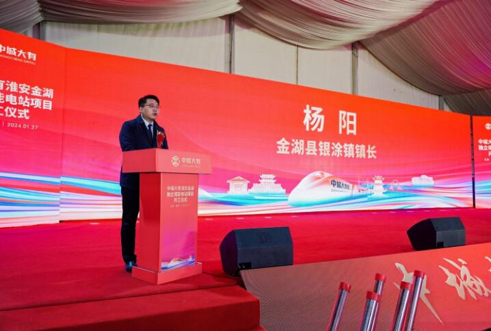 儀式開始,金湖縣銀涂鎮(zhèn)黨委副書記、鎮(zhèn)長(zhǎng)楊陽首先致辭對(duì)項(xiàng)目表示祝賀,并指出該項(xiàng)目是銀涂鎮(zhèn)貫徹落實(shí)縣委縣政府縣域經(jīng)濟(jì)突破決策部署,是深入開展重特大項(xiàng)目攻堅(jiān)的重要階段性成果。他強(qiáng)調(diào),中城大有項(xiàng)目的開工,吹響了2024年“雙招雙引”的號(hào)角,擂響了項(xiàng)目建設(shè)的戰(zhàn)鼓。項(xiàng)目開工只是開始,加快推進(jìn)、建成投產(chǎn)才是關(guān)鍵。銀涂將以開工為新的起點(diǎn),繼續(xù)把項(xiàng)目建設(shè)作為各項(xiàng)工作的頭版頭條,全力以赴抓招商、強(qiáng)平臺(tái)、優(yōu)服務(wù),一如既往為項(xiàng)目建設(shè)提供最優(yōu)質(zhì)的服務(wù),做好企業(yè)全生命周期服務(wù)、全要素保障,以企業(yè)需求為導(dǎo)向,明確項(xiàng)目分管領(lǐng)導(dǎo)和專職幫辦員,進(jìn)行專人對(duì)接,實(shí)行“全程跟進(jìn)+現(xiàn)場(chǎng)服務(wù)”幫辦模式,千方百計(jì)為項(xiàng)目投產(chǎn)搶時(shí)間、趕進(jìn)度,全力保障中城大有早日投產(chǎn)達(dá)效。