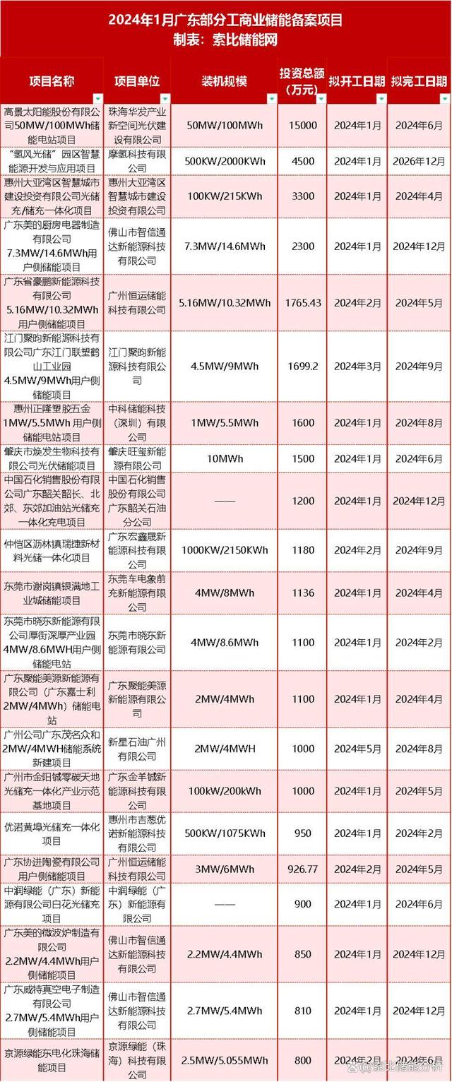 1月廣東儲(chǔ)能投資備案規(guī)模超120億元,工商儲(chǔ)項(xiàng)目116個(gè)