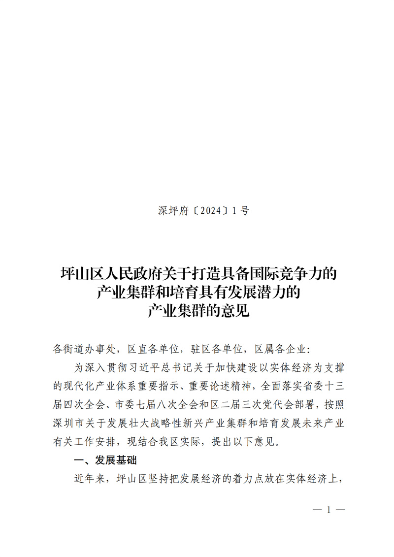 為深入貫徹習(xí)近平總書(shū)記關(guān)于加快建設(shè)以實(shí)體經(jīng)濟(jì)為支撐的現(xiàn)代化產(chǎn)業(yè)體系重要指示、重要論述精神,全面落實(shí)省委十三屆四次全會(huì)、市委七屆八次全會(huì)和區(qū)二屆三次黨代會(huì)部署,按照深圳市關(guān)于發(fā)展壯大戰(zhàn)略性新興產(chǎn)業(yè)集群和培育發(fā)展未來(lái)產(chǎn)業(yè)有關(guān)工作安排,現(xiàn)結(jié)合我區(qū)實(shí)際,提出以下意見(jiàn)(詳見(jiàn)附件)。
