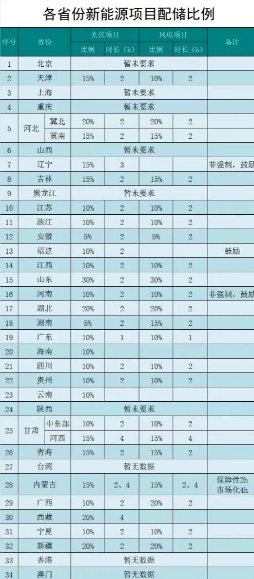 (截至2024年2月各省新能源配儲要求)