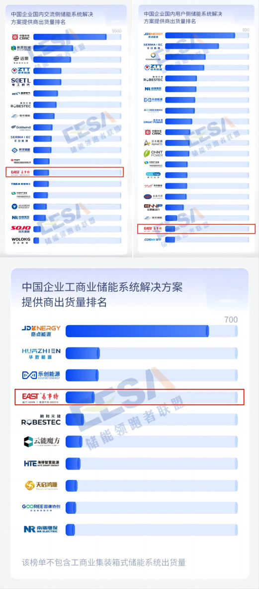 會上,儲能領(lǐng)跑者聯(lián)盟(EESA)還權(quán)威發(fā)布了“2023年度中國儲能企業(yè)全球出貨量排名”,易事特集團榮登多項行業(yè)榜單,包括2023年中國企業(yè)國內(nèi)交流側(cè)儲能系統(tǒng)解決方案提供商出貨量TOP20、中國企業(yè)國內(nèi)用戶側(cè)儲能系統(tǒng)解決方案提供商出貨量TOP20、中國企業(yè)工商業(yè)儲能系統(tǒng)解決方案提供商出貨量TOP10。