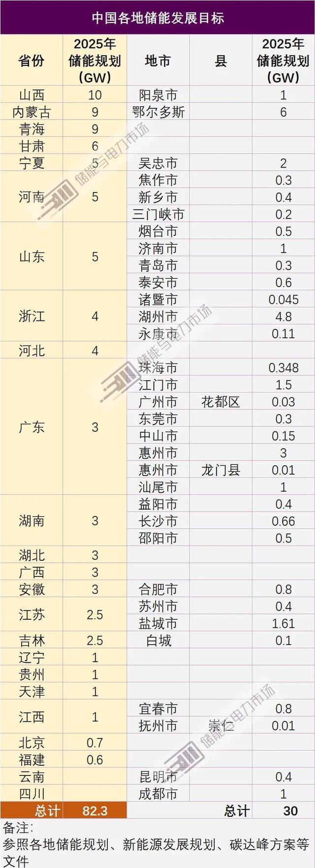 各地規(guī)劃儲(chǔ)能超80GW,山西、內(nèi)蒙古、青海規(guī)劃規(guī)模最大
