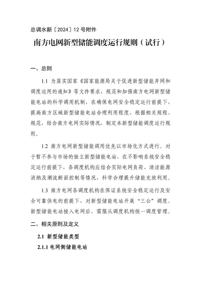 南方電網(wǎng)新型儲能調(diào)度運行規(guī)則(試行)