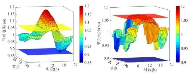 圖3 臺區(qū)配儲前后節(jié)點電壓變化