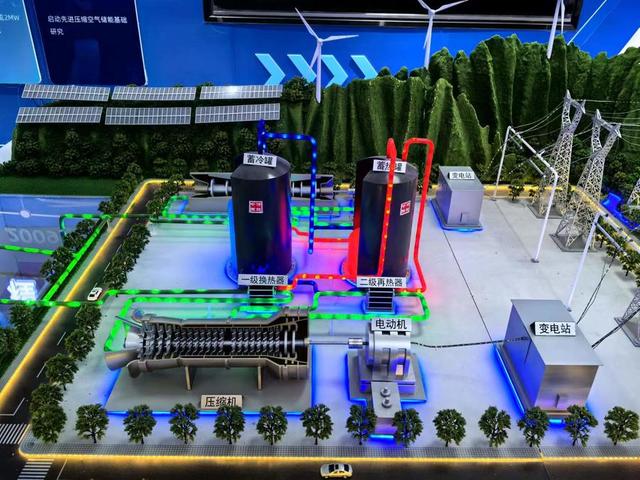 據(jù)了解,該電站采用中科院工程熱物理研究所自主研發(fā)、具有完全自主知識(shí)產(chǎn)權(quán)的先進(jìn)壓縮空氣儲(chǔ)能技術(shù),攻克了全工況優(yōu)化設(shè)計(jì)、關(guān)鍵部件研發(fā)設(shè)計(jì)、系統(tǒng)集成與控制三大核心關(guān)鍵技術(shù),在國(guó)際上首次自主研制應(yīng)用300兆瓦系統(tǒng)寬負(fù)荷多級(jí)組合式壓縮機(jī)、高負(fù)荷多級(jí)軸流透平膨脹機(jī)和大容量高效緊湊式蓄熱換熱器三大核心部件,效率指標(biāo)均達(dá)到國(guó)際領(lǐng)先水平。