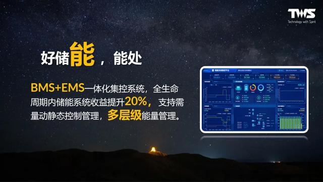 新品BMS+EMS采用一體化集控系統(tǒng),使得全生命周期內(nèi)儲(chǔ)能系統(tǒng)收益提升20%;并且支持需量動(dòng)靜態(tài)控制管理,做到多層級(jí)能量管理;結(jié)合智能優(yōu)化算法和云平臺(tái)遠(yuǎn)程監(jiān)控,AI模型自學(xué)習(xí)優(yōu)化、實(shí)時(shí)診斷健康狀態(tài)、出具數(shù)據(jù)報(bào)告分析,以精準(zhǔn)科學(xué)的“能源管理方案”助力工商業(yè)儲(chǔ)能高效設(shè)計(jì)運(yùn)營。