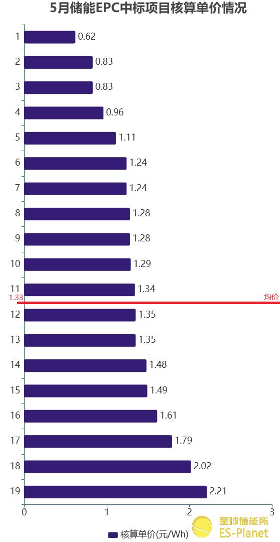 ※ 5月儲(chǔ)能EPC中標(biāo)單價(jià)情況 來源:星球儲(chǔ)能所