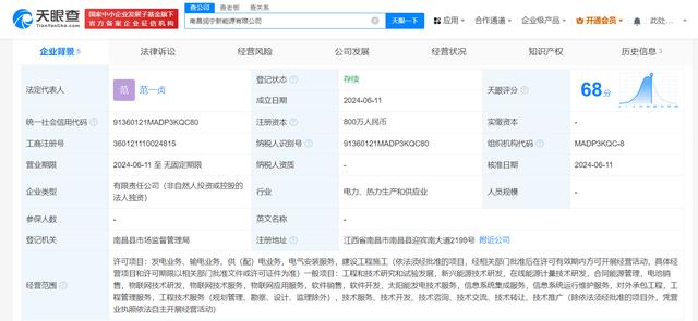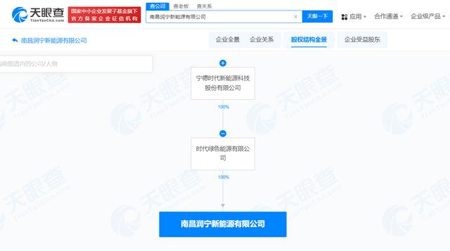 近日,南昌潤寧新能源有限公司成立,法定代表人為范一貞,注冊資本800萬人民幣,經(jīng)營范圍含工程和技術(shù)研究和試驗(yàn)發(fā)展、新興能源技術(shù)研發(fā)、在線能源計(jì)量技術(shù)研發(fā)、合同能源管理、電池銷售等。股權(quán)全景穿透圖顯示,該公司由時(shí)代綠色能源有限公司全資持股,后者為寧德時(shí)代(300750)全資子公司。