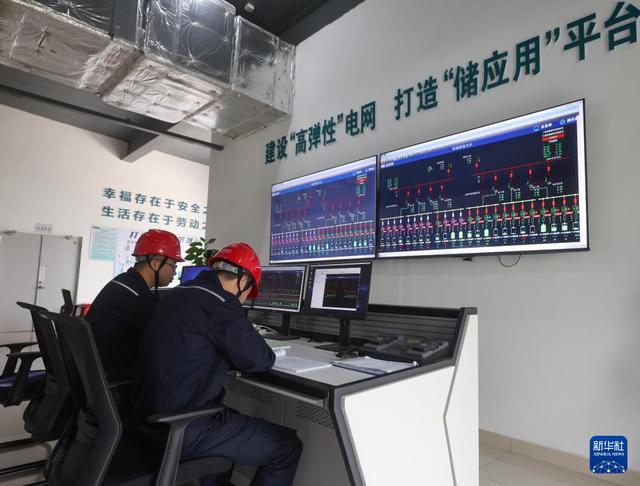 6月13日,在位于浙江省湖州市的長興10千伏雉城電網(wǎng)側(cè)儲能電站控制室,工作人員在查看儲能設備運行情況。