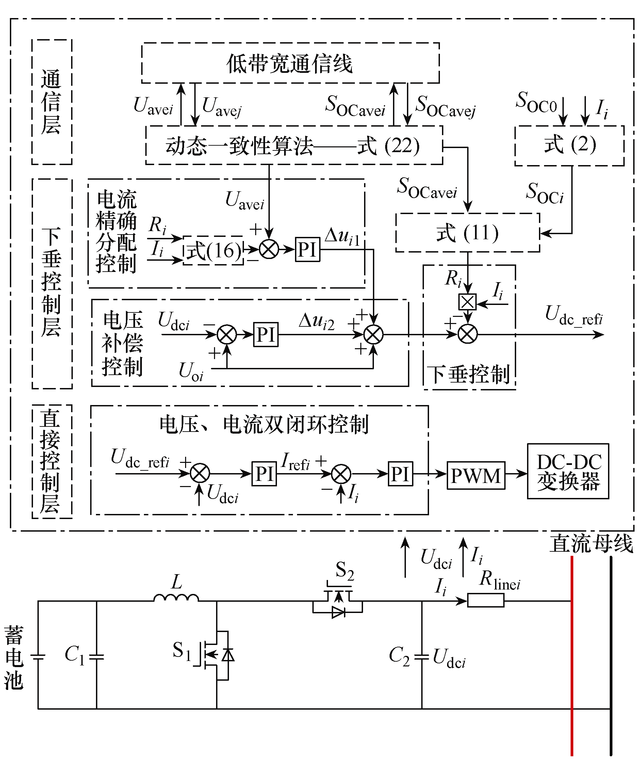 他們指出,以改變下垂系數(shù)為基礎(chǔ),通過(guò)前期控制因子調(diào)節(jié)系統(tǒng)最大輸出功率,后期加速因子放大均衡后期荷電狀態(tài)的差值,能夠達(dá)到加快荷電狀態(tài)均衡的目的。另外,引入容量權(quán)重因子,合理分配不同容量?jī)?chǔ)能單元的功率,使其趨于容量比,旨在有效彌補(bǔ)各儲(chǔ)能單元間的容量差異,有助于確保各個(gè)儲(chǔ)能單元在充電和放電過(guò)程中的合理參與,提高系統(tǒng)的整體效能和使用壽命。